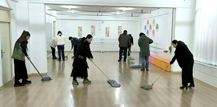 机关第三党支部的同志们手持扫帚、簸箕、垃圾袋、抹布等清洁工具走进了二号教学区学生活动中心,进行卫生清扫。在清扫过程中,支部的同志们分工明确,充分展现出不怕脏、不怕累的精神,用自己的双手为师生们创造了一个更加整洁、舒适的活动环境。