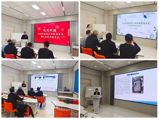 11月5日至7日,硅湖职业技术学院副校长祁丛林一行6人来校对学生管理工作进行考察交流。学生工作处负责人王丽萍,处长助理郭慧莹、高士涵,各系党总支副书记及相关教师参加。