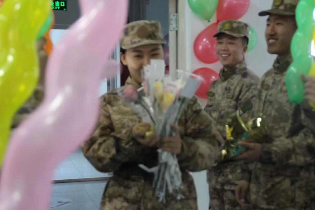 当天,身着整齐迷彩服的学长教官团男性成员们早早准备就绪。活动伊始,他们手捧鲜艳的花束,将芬芳的花朵一一送到女生手中。收到花束的女生们脸上洋溢着惊喜与幸福的笑容,手中的花朵不仅是一份节日礼物,更传递着学长教官团满满的关怀。