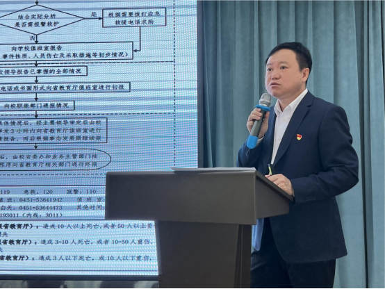 此次活动主要听取保卫处处长成超讲授的“应急突发事件处置与案例分析”。成超从处理应急突发事件原则底线、预案制定实施、处置程序及要点、舆情管控等方面进行了经验交流,提供了务实、有效的工作方法,重点在突发事件案例分享等方面,进行深入阐述,为辅导员今后有的放矢开展学生安全及突发事件应急处理工作,上了一堂针对性和可操作性教强的课。
