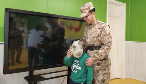 针对特殊儿童认知特点,志愿服务队精心设计了"看、听、做、奖"四位一体的教学方案。活动现场,志愿服务队队员们首先通过装备模型展示直观形式,向孩子们讲解国防知识。在实践环节,志愿者们手把手教导孩子们体验军体拳、佩戴防毒面具等军事基础训练,并通过"小教官""小标兵"等趣味评比激发参与热情。
