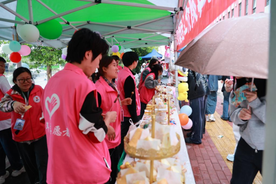 医学院为毕业生们准备了果盘、蛋糕、钵钵鸡及各样小零食。摊位上弥漫了奶油和水果的香气,令人垂涎欲滴。“一期一会美食街舌尖奇遇,一生一世齐工程暖心记忆”。