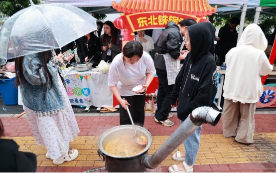 炖牛肉、炖排骨、炖鸡肉……信息学院架起八口大铁锅,为毕业生们带来了香浓四溢的铁锅炖,毕业生们在美食街的烟火气里,烙刻下属于齐工程的青春记忆。