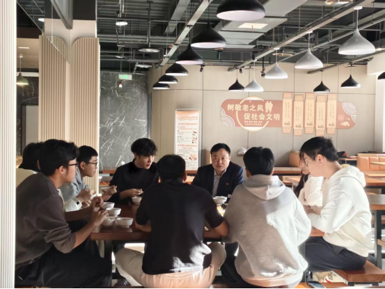 12月4日,孙晓芳与7名2025级新生围坐共餐,孙晓芳始终以亲切的语气关心同学们初入校园的点滴,询问大家对学习环境、住宿条件是否习惯,细致了解日常饮食、校园出行等生活细节是否适应。