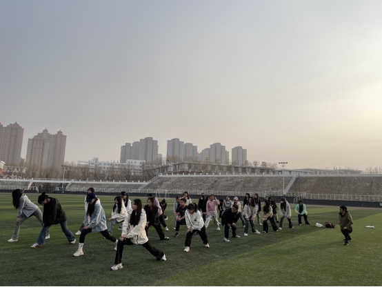 基础部韩淑梅老师通过理论授课及实践操作来提高学生对体操健身的认知度以及锻炼学生的身体素质。拓展现场,同学们快速分解动作、讲解姿势要领。韩淑梅老师带领学生们热身、教学、实操,系统讲解动作规范和健身技巧。通过动作示范以及实践迅速拉近彼此之间的距离和信任度。