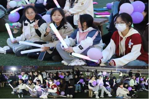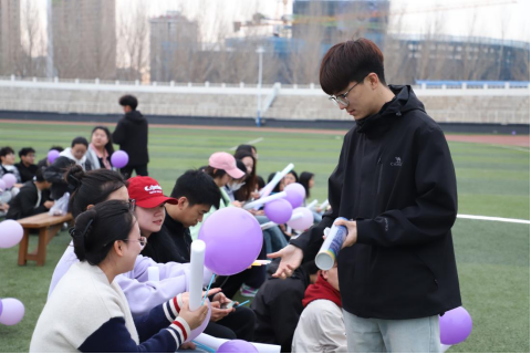 活动伊始,工作人员为同学们准备了小气球、荧光棒、拍手器等应援道具,依次发放给同学们,以便让同学们更加投入,增强现场气氛。