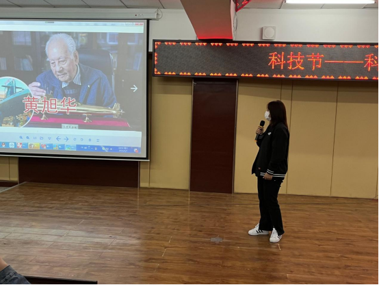 比赛现场,在第一轮计时赛中,随着答题提示音的开始,所有小组成员展开逐轮较量。同学们个个全神贯注,认真思考,沉着应答。他们时而眉头紧锁,时而嘴角微扬,每一个人都在谨慎地答题,力争优秀。聚精会神的认真应答,让复杂的理论知识更加深入人心。在第二轮抢答赛中,参赛选手准备充分,拼反应,拼积累,互不相让。大家都表现出“知识尽在我手,快抢快答必胜”的信心。在第三轮随机命题演讲环节中,选手们紧贴科学热点,语言精练、富有感染力,通过讲解弘扬科学精神,传播科学思想,普及科学知识,为同学们奉献一场科学与艺术完美融合的视听盛宴。护理学202班陈思琦对黄旭华讲解中说道,“他为事业尽力,以爱治家,对国家以及对核潜艇做出的贡献是值得后人深深牢记的,他将一生献给祖国、献给核潜艇,向他致敬”。