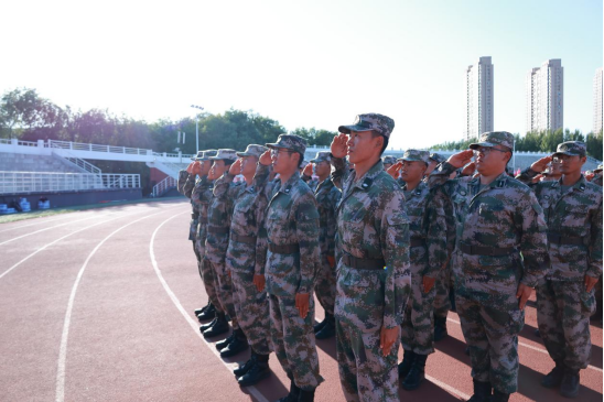 大会伊始,全体起立,升国旗、奏唱国歌。40名教官组成的国旗护卫队迈着坚定有力的步伐护送国旗,伴随着雄壮的《中华人民共和国国歌》,鲜艳的五星红旗冉冉升起。