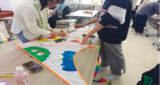 经过前期的初选,本次活动共有19个小组73人进入决赛当中,工作人员为参赛选手准备了颜料盘和刷子,并为参赛选手调制颜色,活动开始,同学们在教室里为自己的风筝构图、上色,尽情挥洒想象。同学们的作品风格各不相同,有的画了自己喜欢的卡通形象玲娜贝儿,金鱼,海绵宝宝,芝麻街,还有绘制具有代表特征的中国风作品。一笔一画细致描绘,转眼间一幅幅色彩艳丽、形态各异的风筝图案就在他们的画笔下展现出来。再搭好骨架穿上线,一个个完美的风筝就大功告成了。