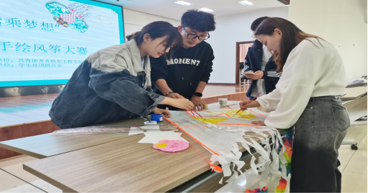 为丰富同学们的课余生活,在紧张的学习之余,放松心情。9月18日下午13时,由校团委主办、学生社团联合会承办的巧手绘未来 纸鸢乘梦想”手绘风筝大赛在2教2508举行。