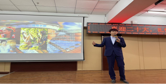 经各系选拔推荐共有22名参赛选手进入决赛环节。参赛选手从收集素材、准备PPT,到展示家乡的生态、文化、景区、美食等,从各个角度展现他们心中最美的家乡画面。机电工程系机械221班王谊国同学介绍自己的家乡哈尔滨,风景秀丽,景色迷人,被称为“东方莫斯科”、“东方小巴黎”,哈尔滨冬天的冰雪大世界和冰灯也是最美的,所以哈尔滨又被誉为“冰城”。信息工程系电科222班赵习龙介绍自己的家乡新疆,有伊犁草原,火焰山,新疆胡杨旅游风景区。其中新疆馕,红柳烤肉,烤包子,烤羊排,烤全羊等特色美食尤为出名。建筑工程系土木221陈自豪同学介绍自己的家乡江西上饶,有遗留下的古城--灵山小镇,有世隔绝的世外桃源--筐岭古村,有传说可以遇见仙子的地方--望仙谷,有扶摇直上九万里--悬空民宿,让在场观众对所介绍的旅游圣地更加的向往。整场活动在参赛选手的讲解中感受到了全国各地不同的文化底蕴,在轻松愉快的氛围中感受传统文化的魅力。台下的同学们也纷纷表示有机会一定要去这些地方旅行一番。