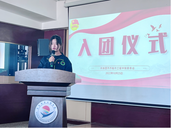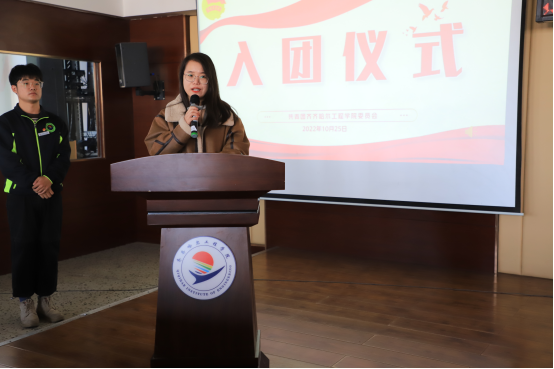 随后,团委指导教师张云惠老师宣读2022年入团名单,9名新团员的加入为齐齐哈尔工程学院团组织注入了新鲜血液,壮大了团组织的力量。