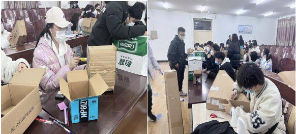 活动开始,财管201徐畅简单介绍了本次活动流程后,同学们拿出不同类型的回收物,如纸壳、瓶子、料子、麻绳等,通过大胆构思,通过剪、贴、粘、折、拼接等方式专心致志的创作自己的宠物小狗,完全投入到自己的创作中。