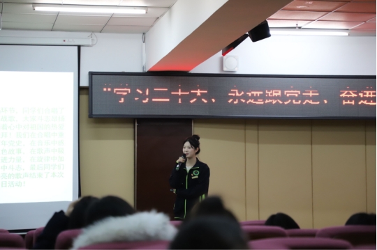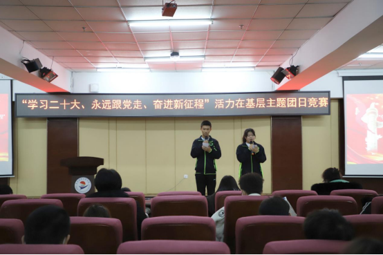 本次活动由辛佳芮和唐剑扬同学主持,13个团支部根据抽签顺序依次上台分享学习成果。在比赛过程中,选手们热情饱满地向评委和观众讲解了他们妙想巧思、精心策划的团日活动,其中各团支部主要通过观看二十大相关视频及讲解PPT的形式来开展此次团日活动。风景211班团支部、机械221班团支部则通过党史竞赛、合唱团歌和阅读红色书籍等方式激发同学们对红色文化的兴趣,让同学们明白青年的含义、使命和担当。