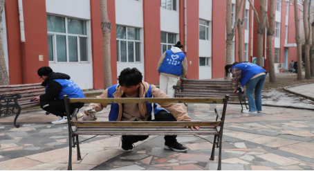 在活动中,志愿者相互配合,有条不紊,充分发挥了“奉献、友爱、互助、进步”的志愿精神,展现当代大学生的责任与担当。他们的身影穿梭在教学楼、九思廊、篮球场、图书馆等地方,清扫积雪、清洁宣传展板、室外椅凳、健身器材、教室卫生及寝室楼周边白色垃圾等校园公共设施和场所,助力文明校园建设,“擦亮校园名片”。