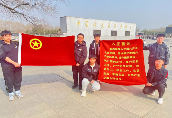团委副书记聂羽轩带领全体团员在团旗面前重温入团誓词。重温誓言,不忘初心,牢记使命,坚定理想信念,始终保持前进的步伐,积极为共产主义事业而奋斗。