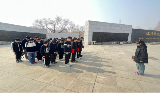 松柏苍翠,丰碑矗立。在庄严的抗战纪念墙前,活动正式开始。全体学生向英烈默哀,缅怀革命先烈,告慰在天英灵。