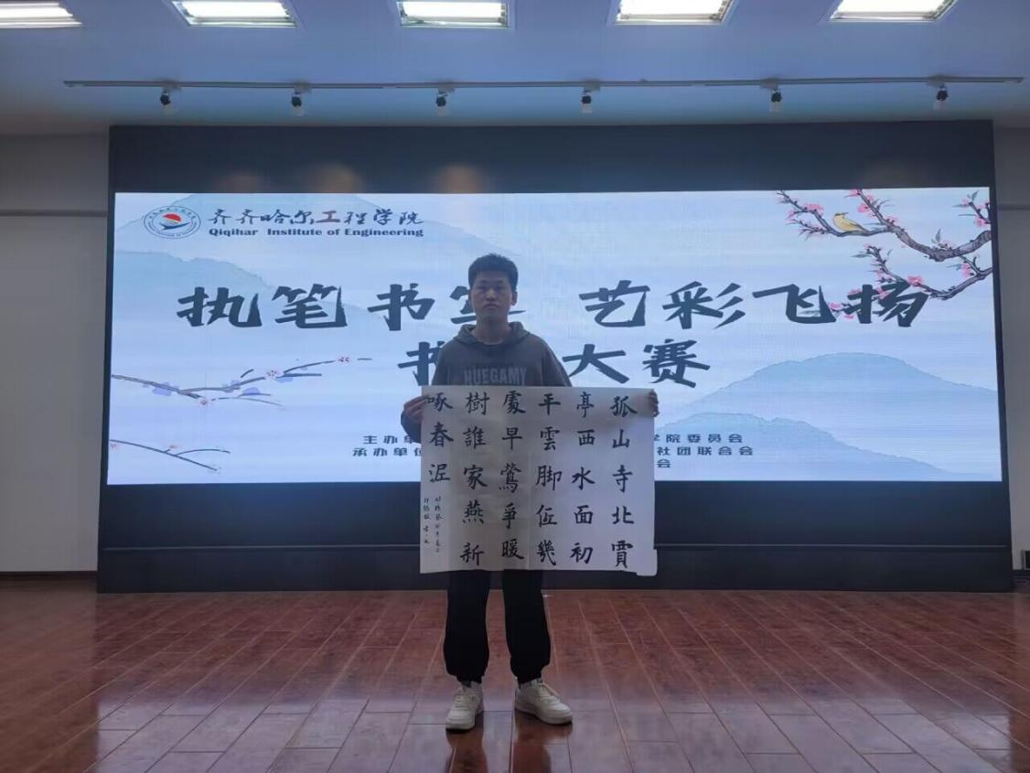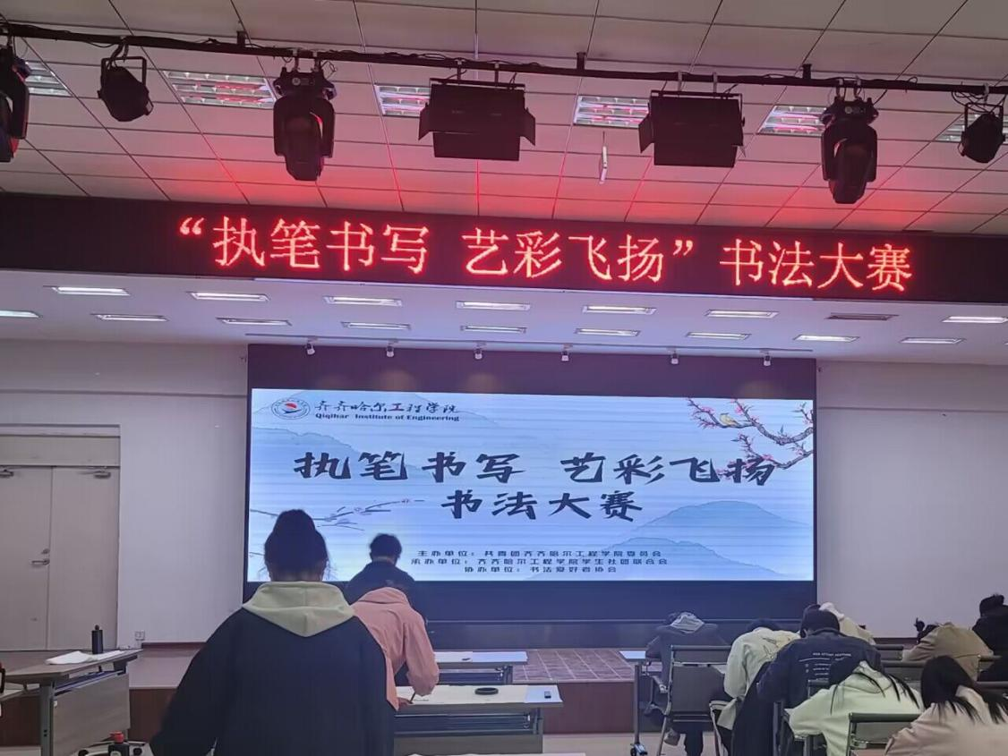阵阵墨香指尖流,幽幽韵味心脾沁。为了丰富我校同学的课余生活文化,促进学校书法爱好者之间的交流,2023年4月13日晚六点,由齐齐哈尔工程学院学生社团联合会承办,书法爱好者协会协办的“执笔书写,艺彩飞扬”活动在二教2508顺利举行。