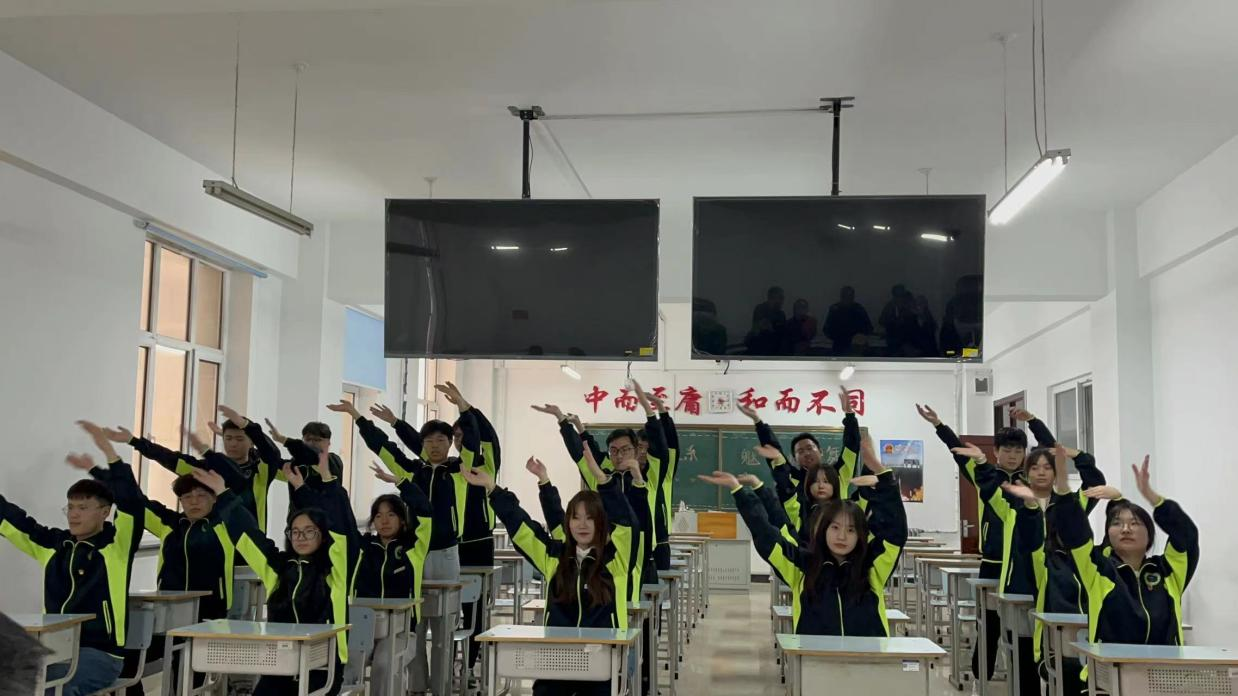 在动感欢快、节奏鲜明的音乐伴奏下,同学们以课桌为道具,或鼓掌为拍,或击桌作势。动作整齐,展现班级团结;动感活力,招展蓬勃青春。同学们经过课间时间刻苦练习最终都有很好的表现。