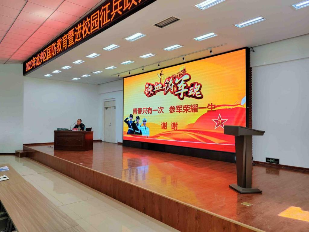 5月23日下午三点,为了提高国民的国防意识,吸引我校优秀青年参军,巩固国家安全和发展,我校进行了征兵宣讲活动。