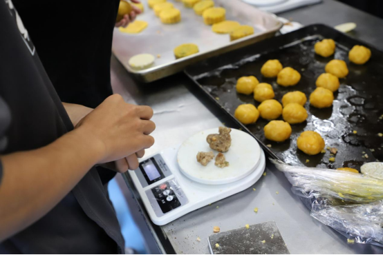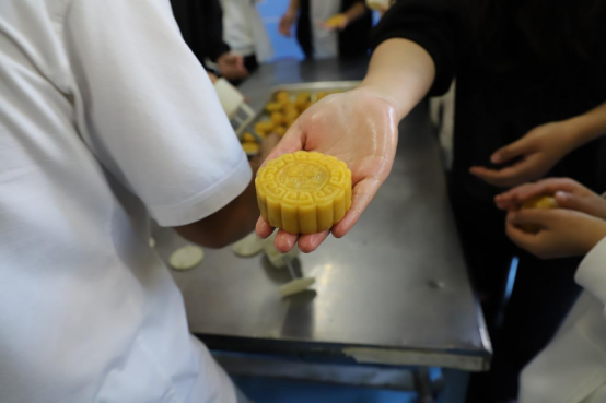 活动开始时,聂羽轩同学介绍了本次活动的主题及活动的意义。随后讲解月饼的制作方法,从原材料的配比、揉面、做皮、调馅料,到最后将面团放入模具中进行压模范。学生们认真学习、亲手制作。每个人都化身为月饼师傅,在一片欢声笑语中,一个个精致的月饼逐渐成型。香甜的味道萦绕在大家鼻尖,现场其乐融融,弥漫着一派欢乐的气氛。学生们纷纷拿出手机记录下这美好的时刻,现场洋溢着开心、幸福的节日味道。