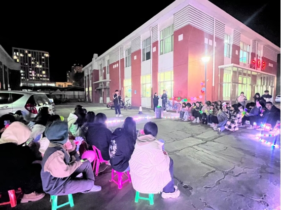 舞台以明亮的灯光为背景,搭配丰富多样的道具和装饰,为参与者打造充满震撼力的视觉享受。此外,现场还设有空旷的舞台区域,供学生们展示才艺。18时,音乐会在歌曲《日不落》中拉开帷幕。随后,一个个精彩的节目轮番上演。有激情四溢的摇滚歌曲,有悠扬动听的古典乐曲,还有抒情优美的流行歌曲。同学们在舞台上尽情展现自己的才华,吸引着观众及路人的目光。