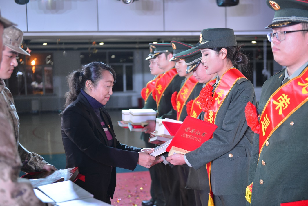 随后各位老师为退团教官颁发纪念相册和礼品,并由各位退团教官在团旗上签字留念。有情不管别离久,情在相逢终有期。接着由孙晓芳老师宣读第十二届学长教官团干部任命决定以及团旗、三军指挥刀、枪支和锦旗仪式的交接,并由孙晓芳老师宣读第十二届学长教官团分团干部任命决定,各系老师授学长教官团各分团团旗。责任的接力和传承在这一刻得到延续,学长教官团的使命将由新生代承担。