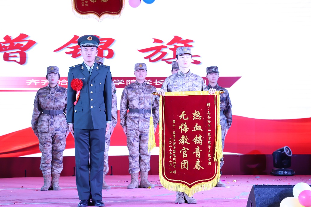 活动在全体教官的合唱《拼刺刀》中开始,热情洋溢的歌声让整个场地都充满了热烈的气氛。紧接着是精彩纷呈的舞蹈表演,为整个仪式增添了青春的色彩。随后环节中,大屏幕播放的回忆视频,每一帧画面都记录着他们辛勤付出的身影和努力。紧接着由学长教官团指导老师孙晓芳宣布退团教官名单,教官们的表情或庄重或感慨,他们用坚定的眼神接受着这份荣耀与责任的交接。