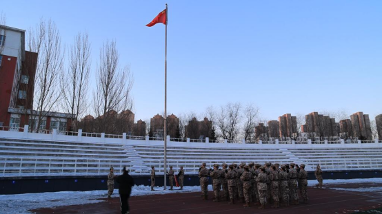 随着《义勇军进行曲》的奏响,国旗在晨光中冉冉升起,全体师生面向国旗,庄严行礼,高唱国歌。