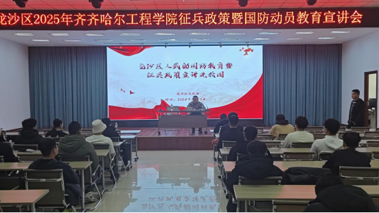 为鼓励广大优秀学子积极参军入伍,施展才干,12月3日15时,学校召开2025年征兵政策进校园暨国防动员教育宣讲会,本次会议邀请齐齐哈尔市龙沙区武装部部长庞永,参谋张帆作为主讲嘉宾,学生工作处长王丽萍、武装部副部长孙晓芳、学生工...